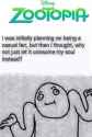 Nick (thought bubble): "IS CARROTS SERIOUS? I'VE NEVER HEARD HER SAY THAT ABOUT ME, BUT THIS GUY-" (TN: Not all of the words even fit in the bubble implying Nick is thinking rapidly about it; keep that in mind for typesetting reasons)