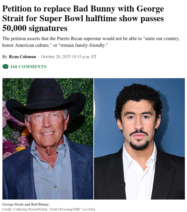 https://ew.com/petition-replace-bad-bunny-with-george-strait-super-bowl-halftime-show-passes-50000-signatures-11833542