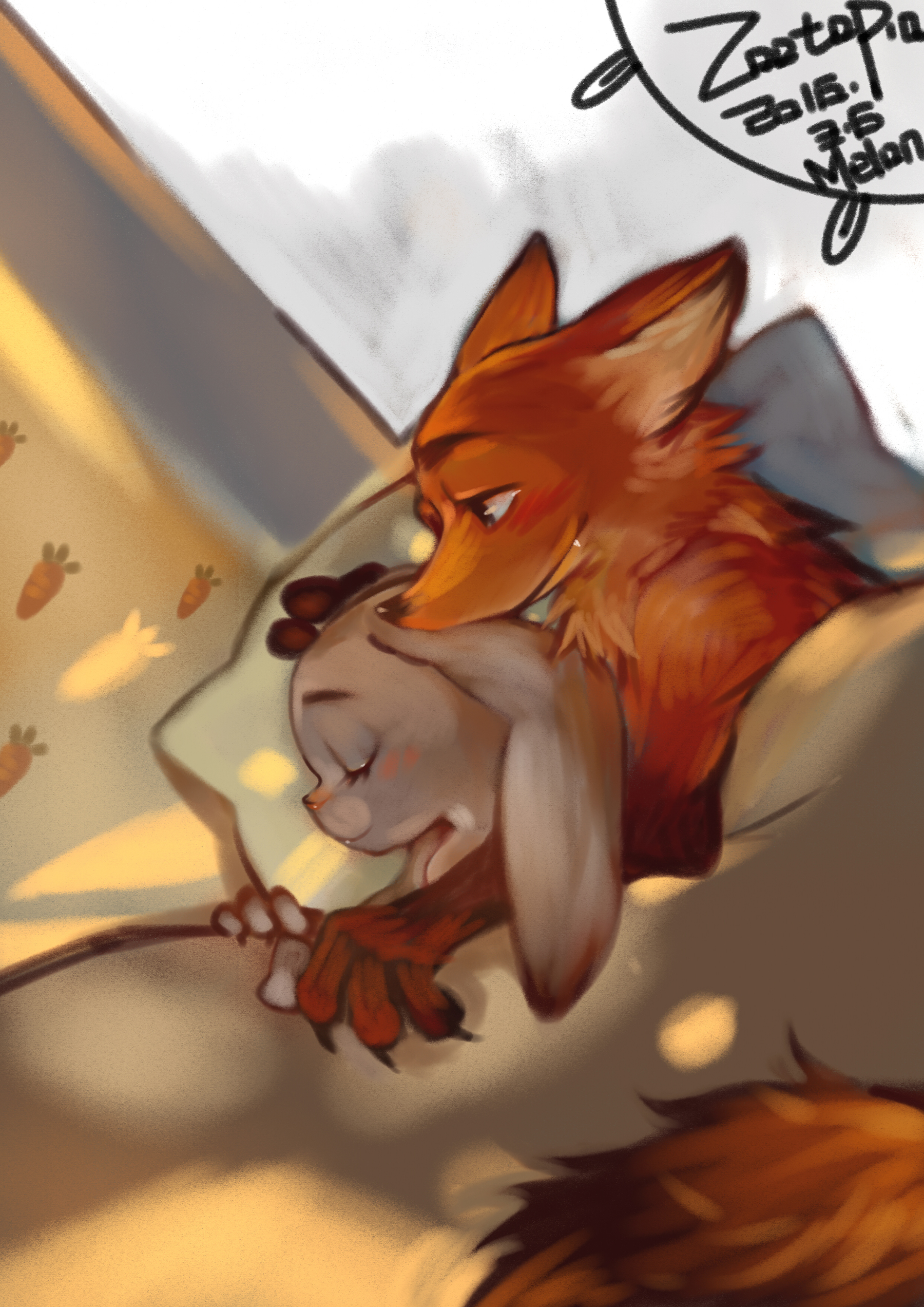>Judy began to lower herself downstill in her underwear, you never fully undress her, you did for nick but not for her, at least mention she moved her underwear to the side or add a line after she removed nick's underwear stating she removed hers
