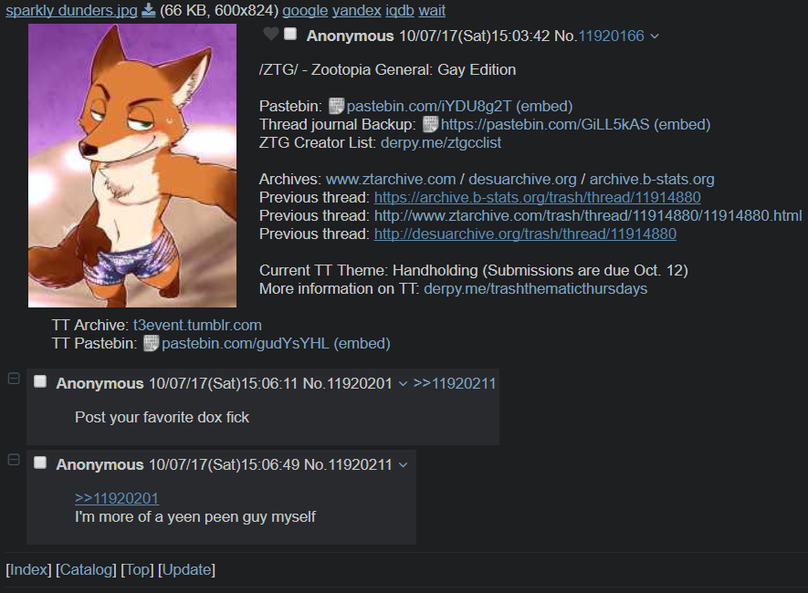 2018-10-04: Search server active for recent posts, rebuilding for older posts. DesuArchive & RBT restored after host's storage had a 2nd SAN hiccup on 9/24. No damage, but posts need import from the contingency scraper. Many thanks to our new tetrarchy of sysadmins who worked to fix this complex service after the loss of the original admin. More info later. Donations would still help in case of image storage failure and we still need a new scraper.