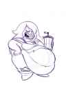 >You pounce at the oppurtunity and get straight to work with pampering Amethyst's belly. You pull up her top to where you expose her purple gut for all the world to see, gently squish your hands against her chub, and proceed to give the sides of her belly a vigorous rubbing.